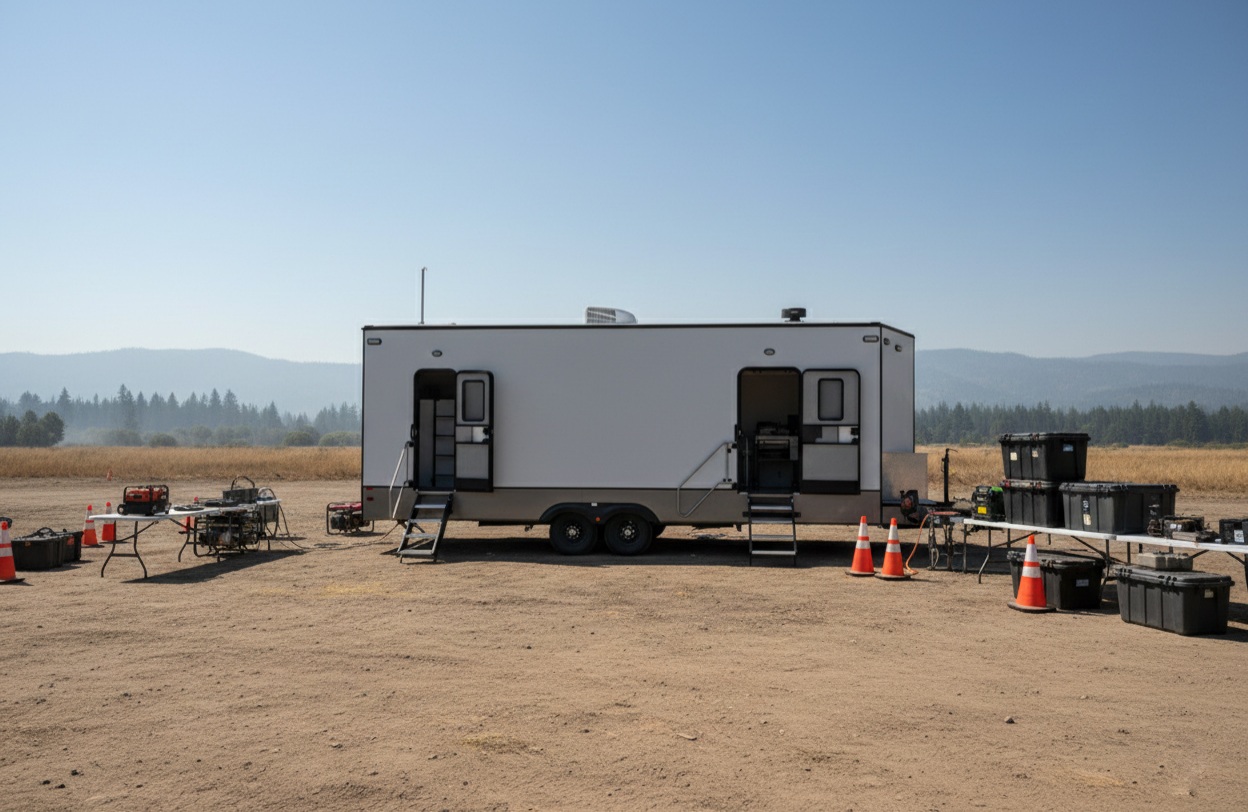Falcon Peak Site Logistics provided rapid on-site printing and mobile office support during the Tiger Creek Fire response, ensuring operations had continuous access to critical documents and maps.